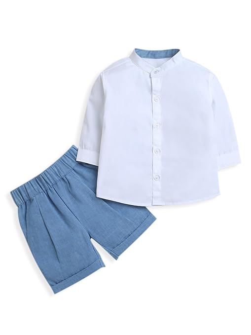 - Stylish Coordinated Set: Includes a classic white full-sleeve linen shirt and trendy blue denim shorts pant for boys aged 9-10 years.