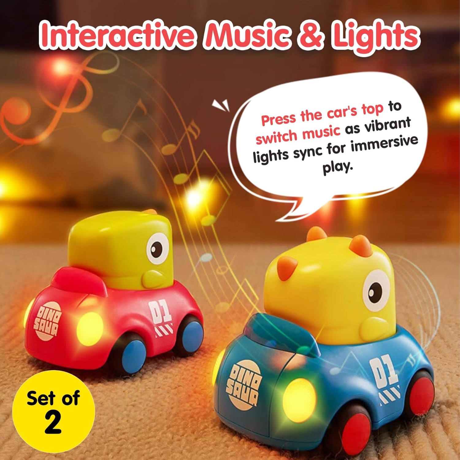 • [𝐃𝐈𝐍𝐎𝐒𝐀𝐔𝐑-𝐓𝐇𝐄𝐌𝐄𝐃 𝐅𝐔𝐍] – The set includes 2 toy cars, encouraging collaborative or independent play for endless fun. The cute dinosaur shape car attract the baby’s attention! Many babies love dinosaurs!Bright colors can develop baby’s early vision, concentration and color cognition.