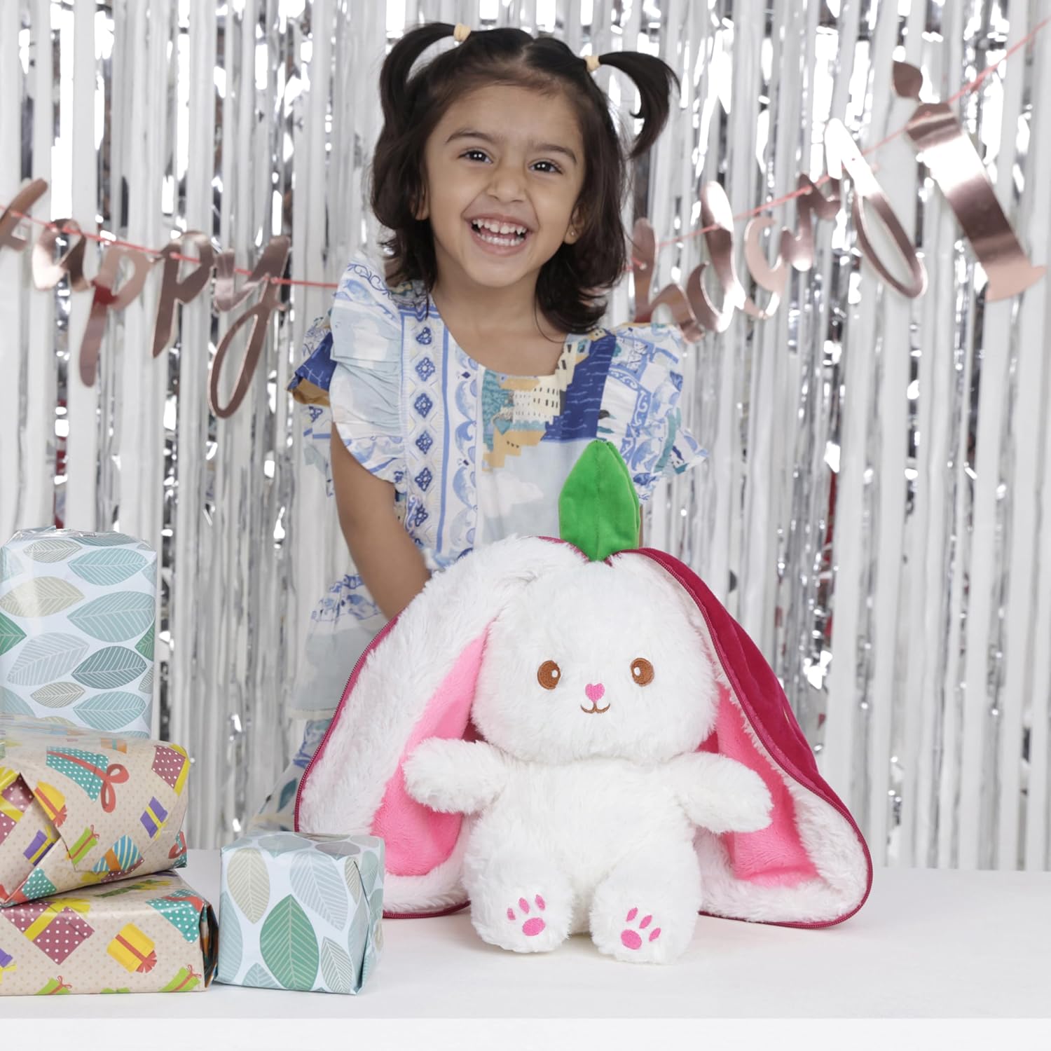 • Dual Design Delight: Experience the whimsy of a reversible Carrot and Strawberry Bunny Plush Toy, offering two adorable looks in one. Perfect for kids aged 3 years and above, this soft toy sparks creativity and joy.